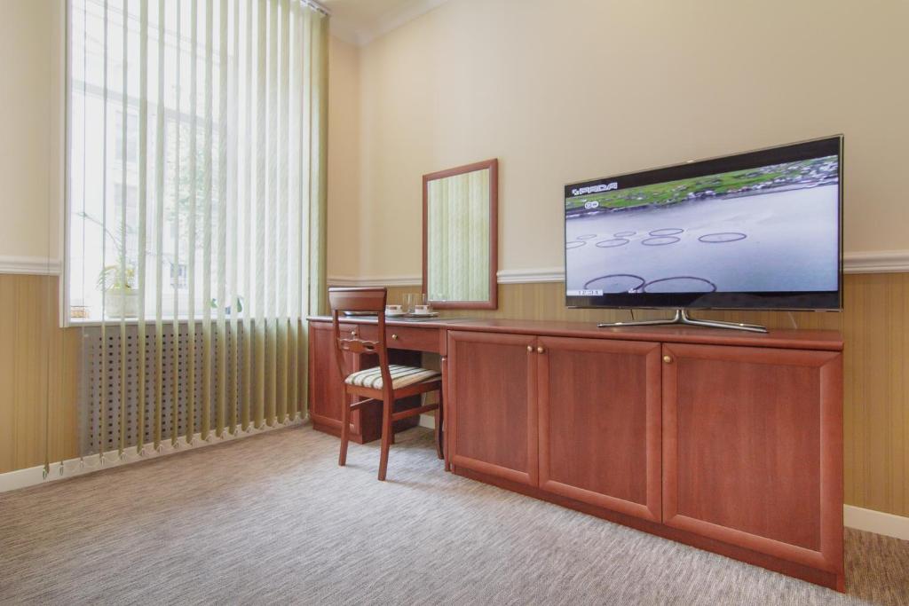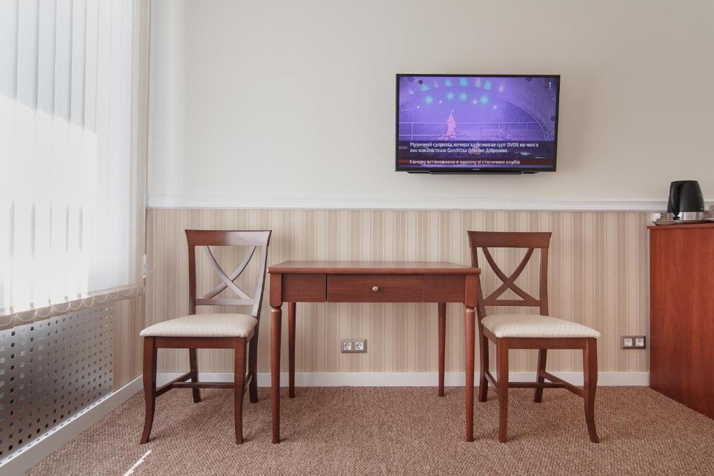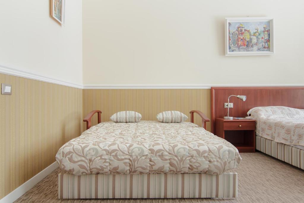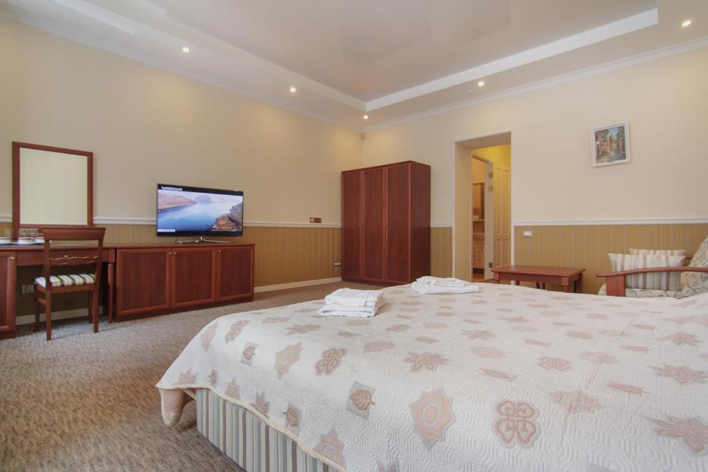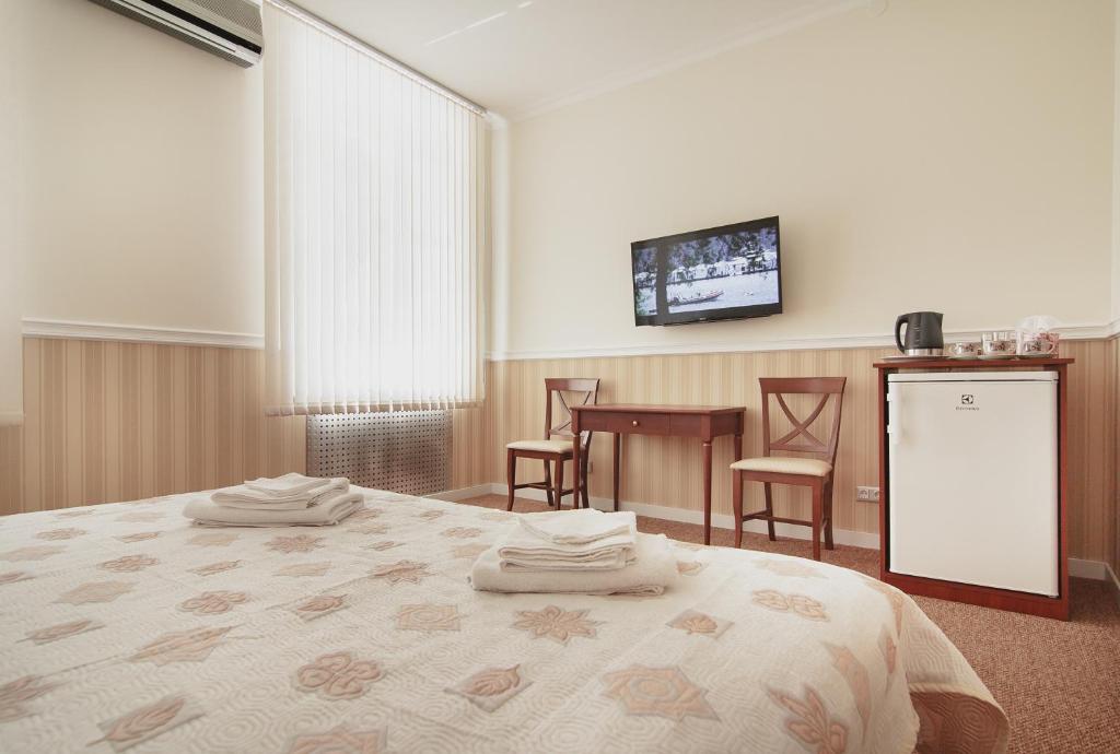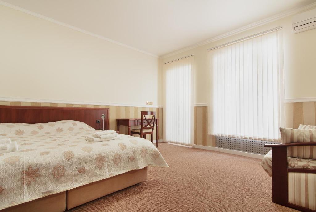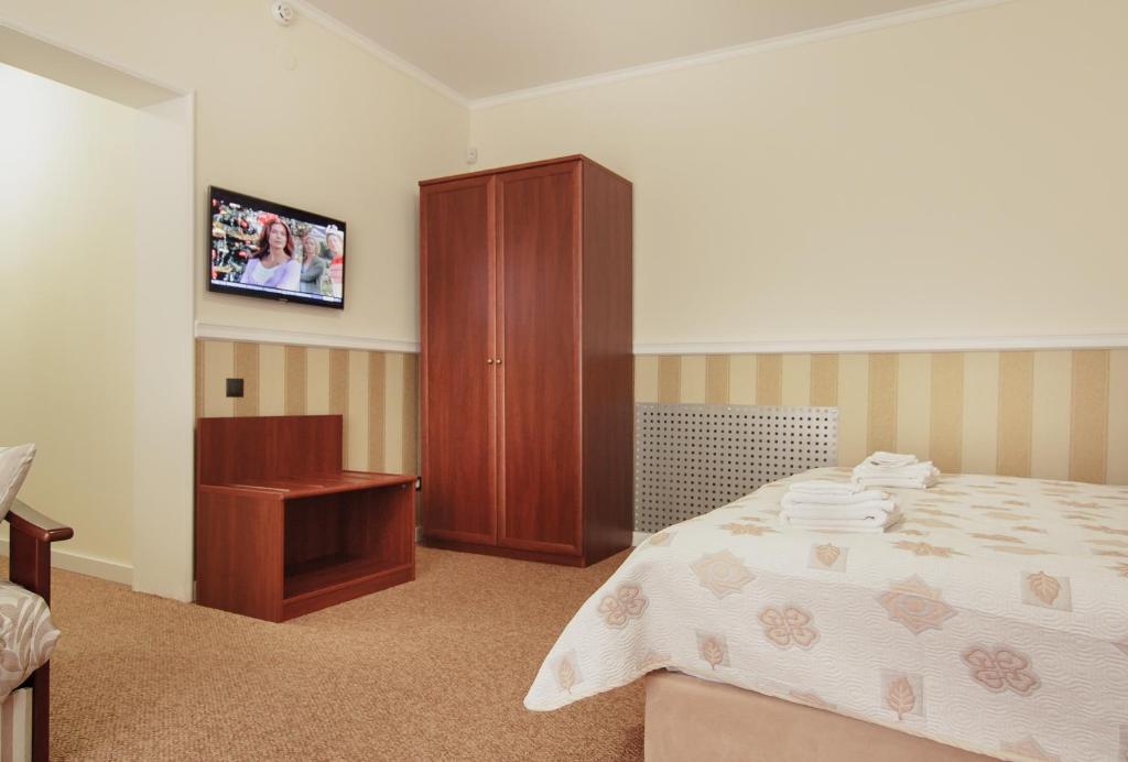 Просторный номер с двуспальной кроватью или двумя отдельными кроватями и раскладным диваном, оборудован большим телевизором (с кабельным ТВ), холодильником, рабочим и журнальным столиком со стульями, санузлом с душевой кабиной, необходимой мебелью для комфортного отдыха. Также предусмотрен чайник и другие принадлежности для приготовления кофе и чая, бесплатный доступ к Wi-Fi.
